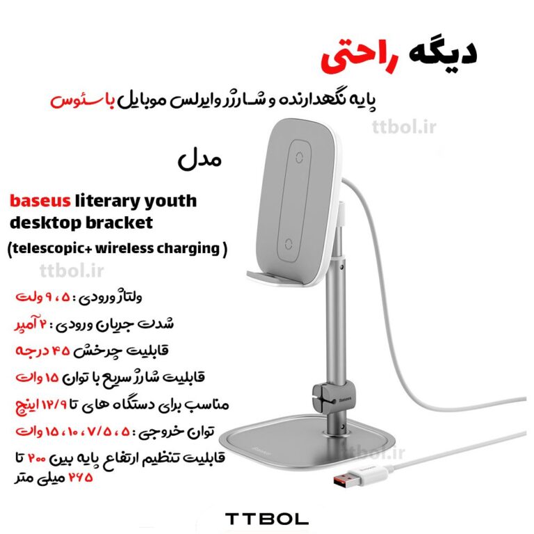 پایه نگهداره و شارژر وایرلس موبایل باسئوس BASEUS literary youth desktop bracket suwy-d0s