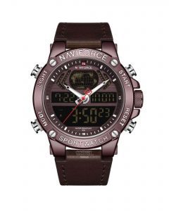 ساعت دو زمانه بند چرمی اصل شرکت NAVIFORCE یک کالای اصلی و شرکتی با موتور کوارتز ساخت ژاپن با کیفیت عالی
